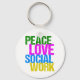 Un cadeau de travailleur social personnalisé et amusant, couleurs vives de néon vert, rose, bleu et jaune pour quelqu'un qui aide les autres personnes dans le besoin. Plutôt Paix Aimez porte - clé de travail social.