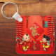 Festive salutation traditionnelle chinoise avec pétards, noeuds chanceux et nuages auspicieux + coupé en papier Dragon doré + deux enfants mignons pour souhaiter Bonne Année ou Anniversaire. Conception sur porte - clé Carré avec monogramme ou prénom pour personnaliser à l'arrière. Carte de voeux, carte postale, autocollant et plus encore...