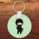 La mignonne fille de dessin animé ninja est habillée tout en noir mais pour un arc rose sur son masque de tête. Le katana d’épée japonaise traditionnel peut être vu attaché sur son épaule, sa poignée est également rose.