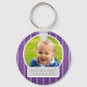 Porte-clés Photo Bébé Avec Nom Elegant Stripes Purple