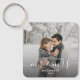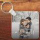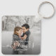 Commémorez le premier Noël de votre mariage avec ce porte - clé photo keepsaké. Le texte blanc dit "Notre premier Noël en tant que Monsieur et Madame", avec les mots "Monsieur et Madame" dans un élégant script d'écriture avec des fioritures avant et après. Remplacez l'exemple d'image par votre photo préférée, et ajoutez votre nom de famille et l'année. Un filtre dégradé foncé permet de faire apparaître le texte.