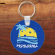 Un porte - clé de pickleball amusant avec un "soleil" de pickleball encadré par un palmier tropical et des vagues bleues de l'océan. Ajoutez votre texte personnalisé ci-dessous - nom du club, date/lieu du week-end de pickleball, nom du tournoi, nom du joueur, etc. Accrochez-vous à votre sac de pickleball ou utilisez-le pour les clés de voiture - Fait un cadeau parfait pour n'importe quel joueur de pickleball. Modifiez facilement la couleur arrière - plan.