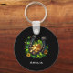 Porte - clé avec une photo sur le thème de la Saint Patrick. Un fer à cheval noir et or assis dans un lit de trèfle vert avec des pièces d'or brillantes.