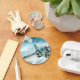 Un porte - clé avec une belle aquarelle. Des pins couverts de neige sur une scène hivernale. Les flocons de neige tombent sur un sol enneigé. Des nuages blancs et bleus moelleux dans le ciel. Avec un lac gelé dans l'arrière - plan. Vibe de silence.