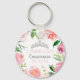 Cette fête florale rose vif chic de Quinceañera est appréciée des porte - clés et présente de jolies fleurs d'aquarelle et de beaux feuilles botaniques verts autour de la tiare argentée scintillante. Un joli cadeau féminin et féminin pour le 15e anniversaire de votre ado. Flirty et les pivoines féminines créent une bordure mignonne autour du nom et de la date élégants.