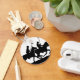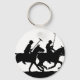 Illustration en silhouette noire et blanche des joueurs de polo sur leurs chevaux, mallets balançants