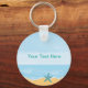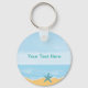 Porte-clés sur le thème de la plage incluant une belle image graphique pittoresque de la plage, une étoile de mer sur le sable, et espace texte que vous pouvez personnaliser avec votre propre message dans un design créé pour les enfants ou les adultes comme un cadeau ou une faveur de fête.