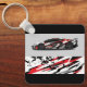 Ce porte - clé est présenté en noir avec une conception d'impression auto race. Image stock vecteezy.com