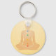 Porte - clé montrant une personne androgyne avec des chakras arc-en-ciel dans la méditation pose Lotus. La personne est illustrée de palmiers de ses mains dans la mudra réceptive. Les chakras (Anahata, Muladhara, Swadhisthana, Manipura, Vishuddha, Ajna, Sahasrara).