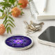 Cet abstrait froid a été créé à partir d'une fractale de l'Apophyse transformée en kaléidoscope à six branches. Le design est orné d'un flocon de neige encadré d'argent avec incrusté de bleu profond, de violet et de lavande, serti de gemmes roses rondes et accentué d'un bijou rose profond au centre. L'ensemble donne l'effet d'une lumière douce et enneigée brillant à travers le noir et le bleu de minuit d'une nuit d'hiver sombre.