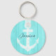 Porte - clé d'ancre de bateau bleu turquoise avec nom. Conception du thème maritime avec ancre de voilier de marine. Un cadeau personnalisé pour les amis et la famille.