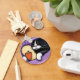 Porte - clé de chat noir fantasque. Après une journée trépidante Sox, le chat adore se baigner à côté de son canard préféré pour un long snooze. Oeuvre © Lisa Marie Robinson.