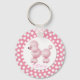 Porte - clé mignon poodle rose fait en rose avec des pois blancs. Un cercle blanc, au milieu, a d'adorables graphismes d'un caniche rose moelleux, et texte rose personnalisé. Personnalisez le texte pour lire ce que vous voulez. Ça fait une idée de cadeau.