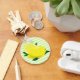 Cette conception comporte deux citrons (un coupé en deux), sur un arrière - plan à rayures horizontales vert clair.