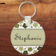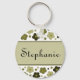 Porte - clé mignonne avec de petites fleurs simples mignonnes dans les tons vert olive de différentes tailles et une bannière avec nom personnalisé, sur arrière - plan blanc. Cliquez sur le bouton "Personnaliser" pour ajouter votre propre nom, monogramme ou initiales, modifier le style de police, la couleur de police et la taille de police. Idée cadeau pour anniversaires, anniversaires, fêtes et jours spéciaux.