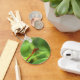 Ce porte - clé présente une libellule rouge sur un arrière - plan vert et jaune.