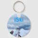 Superbe porte - clé, avec beaucoup de neige sur les montagnes et les pointes des skis de neige montrant au fond. Le texte lit iSki et peut être modifié pour lire tout ce que vous voulez. Idéal pour tous les skieurs de neige.