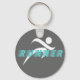 Ce keyring contient le mot runner qui semble que le vent souffle à travers lui avec une silhouette d'une personne en marche dans l'arrière - plan.