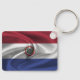 Porte - clé avec le drapeau du Paraguay en tissu ondulé. Ce design présente les couleurs du drapeau paraguayen et un design avec un bel effet texturé de matériau de tissage. Ce drapeau design est une excellente façon de vous montrer fier d'être du Paraguay.