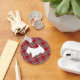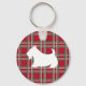 Un chien de scottie blanc se démarque contre un arrière - plan rouge plaid sur ce porte - clé.