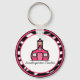 Un porte - clé avec le logo de The Pink Schoolhouse à l'intérieur d'un cadre d'impression zébrée avec garniture rose. Ajoutez votre nom ou autre texte de votre choix.