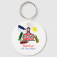 Un porte - clé enseignant montrant une scène d'école qui semble avoir été colorée par un enfant avec des crayons en rouge, jaune, bleu et vert qui entourent l'illustration. Schoolhouse est rouge avec des illustrations d'herbe, un nuage, et l'accent du design. Le texte rouge dit "Enseignant." Personnalisez avec votre nom en bleu. Recherchez les articles correspondants dans la catégorie "Crayons" de The Pink Schoolhouse.