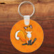 Prenez votre petit ami de renard sur vos clés ! L'image est un petit renard souriant sur un arrière - plan de pattes orange.