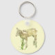 Ce porte - clé présente un doux petit agneau de seulement trois semaines. Il grignote sur l'herbe contre un arrière - plan jaune.