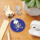 Concevez avec un crâne mouillant et des skateboards croisés au lieu d'os contre un arrière - plan bleu profond.