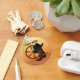 Illustration graphique d'une roue de wagon de l'Ouest, d'un casquette de cowboy et de bottes de cowboy sur un porte - clé de qualité supérieure personnalisé. Le porte - clé a un modèle texte pour votre personnalisation. OEuvre originale : Copyright Charmaine Paulson