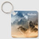 Porte - clé illustré d'un dessin d'un loup sauvage hurlant. Customisez cet objet ou achetez tel quel. Image stock