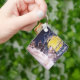 Une image d'un loup hurlant sur la lune avec le pack de loups à proximité rend hommage à ce beau porte - clé. Artiste international Jo-Ann Hayden