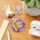 Mignonne princesse avec cheveux blonde caractère blanc caractère violet porte-clés rose. Design original et typographie par Sarah Trett pour www.mylittleeden.com