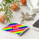 Les bandes arc-en-ciel diagonales forment un motif dynamique incliné à droite, derrière le mignon coeur d'amour rouge. Le petit coeur rouge doux a une bordure rose-violet et dit "amour" en écriture blanche, et a une légère ombre portée de sorte qu'il "flotte" sur les rayures. Les couleurs arc-en-ciel sont des tons de rouge, orange, jaune, vert, bleu, indigo et violet, qui sont les couleurs du spectre lumineux. Doux et élégant, mignon et romantique, c'est pour quiconque croit aux arcs-en-ciel et au pouvoir de l'amour. Obtenez-le comme une amitié ou un cadeau de remerciement, ou un symbole d'un nouvel amour et d'un amour toujours durable, pour les amis, les membres de la famille, partenaire romantique, partenaire de vie, mari ou femme, une infusion d'amour arc-en-ciel pour égayer la journée de quelqu'un. Les rayures inclinées d'origine aiment le design de coeur par Sylvia Rose. Visitez-moi sur Twitter @Sylvia_FineArt. Bonne journée !
