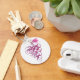 Un porte-clés bouton rond présente une grappe de raisins faite à partir de taches de vin rouge. Les porte-clés font des cadeaux mémorables pour la famille et les amis ou créez-en un pour vous-même.