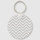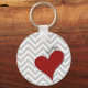 Porte-clés Red Heart on Grey Chevron Stripe avec nom