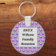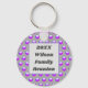 Créez un porte - clé unique pour votre réunion de famille ou vos vacances en famille. La motif est dotée d'un motif à pois bleu vif et violet contre un arrière - plan gris foncé. Le centre est doté d'un rectangle gris bleu qui fournit l'arrière - plan pour votre nom de famille et votre année. Changez rapidement et facilement tout le texte pour personnaliser pour votre réunion de famille spéciale. Les porte - clés vous offrent une tenue de séjour pratique et peu coûteuse pour votre prochaine réunion.