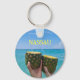 Vous pouvez personnaliser ce porte - clé avec votre nom d'un côté et votre destination de l'autre. Il est décoré de chaque côté avec une photo de deux demi-ananas remplis de punch au rhum. Ils sont retenus contre un ciel bleu bahaméen et la mer. La photo a été prise sur Cabbage Beach, Paradise Island, Nassau, Bahamas.
