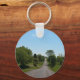 The keychain has a picture of a long straight road with small hills with a blue sky.