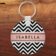 Accessoirisez vos clés avec style grâce à un élégant porte-clés rond moderne. Le design présente un motif zig-zag chevron noir et blanc, une jolie bande de rose fausse rose or et votre nom ou autre texte personnalisé dans une police de caractères typographiques noirs simple. Cet accessoire élégant et tendance est un cadeau stylé pour elle. Parfait comme cadeau de fête de mariage ou de soirée d'enterrement de vie de jeune fille, ou comme idée de cadeau pour demoiselle d'honneur.