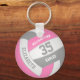 Ce porte - clé à thème de volley-ball mignon dispose d'un volley-ball rose, gris et blanc réaliste sur lequel vous pouvez customiser le nom du joueur et le numéro de maillot ainsi que le nom de l'école ou du club et le nom de la mascotte dans une police de style lettre variée - par katz_d_zynes