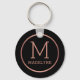 Ce porte - clé personnalisé présente un design de bordure en or rose sur un arrière - plan noir. Personnalisez-le avec votre nom et votre initiale.