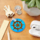 Voyages en bois vintage détaillé Roue ou Helm, idéal pour les propriétaires de bateaux et les marins avec un arrière - plan bleu océan.