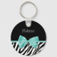 Porte-clés Ruban Zebra Print Aqua Mint avec nom