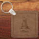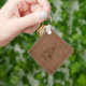 Ce porte - clé personnalisé est doté d'une texture rustique en cuir imitation brun avec votre monogramme et nom à personnaliser. De nos coeurs aux vôtres, amusez-vous !