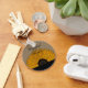 Le mariage privilégie le design avec un tournesol dessiné graphiquement sur un arrière - plan burlap utilisant les couleurs du jaune, de la rouille et du noir multicolore, l'arrière - plan burlap étant un ton kaki.