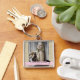 Félicitations Rustic Rose moderne Graduation Porte - clé photo avec un nom de diplômé, photo, casquette de graduation et typographie tendance Félicitations à l'arrière - plan rustique beige. Personnalisez avec votre nom et ajoutez votre photo préférée.