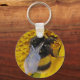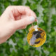 Eine grosse Hummel mit Pollen auf dem Kopf, auf einer gelben Sonnenblumenblüte ist auf diesem Schlüsselanhänger.
