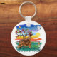 Un Setter irlandais est projeté contre un ciel aux couleurs vives et un soleil éclatant. Un cardinal et un oiseau bleu chantent dans un arbre qui coule dans la brise douce.