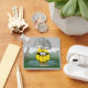 Le Pingouin in yellow rain and slicker standing in the rain in a puddle as lightning strikes above, to personalize.